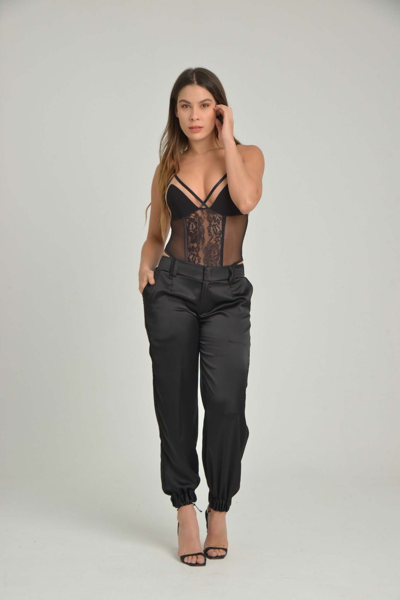 Body combinado en blonda, mallatex y nilón.